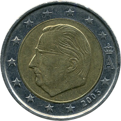 Info: Belgium's euro coins were designed by Jan Alfons Keustermans, Director of the Municipal Academy of Fine Arts of Turnhout. There are three series of coins in circulation. All are valid. The first series depicts King Albert II in the inner part of the coin, while the royal monogram - a capital "A" underneath a crown - among 12 stars, symbolising Europe, as well as the year of issuance appear in the outer part.