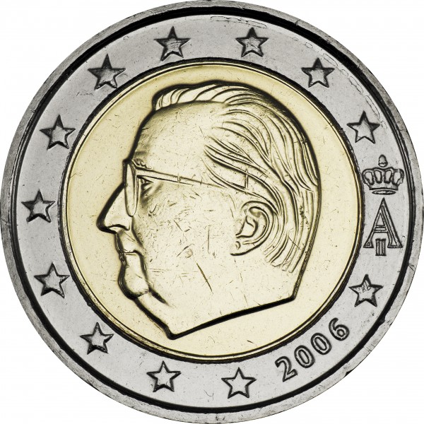 Info: Belgium's euro coins were designed by Jan Alfons Keustermans, Director of the Municipal Academy of Fine Arts of Turnhout. There are three series of coins in circulation. All are valid. The first series depicts King Albert II in the inner part of the coin, while the royal monogram - a capital "A" underneath a crown - among 12 stars, symbolising Europe, as well as the year of issuance appear in the outer part.